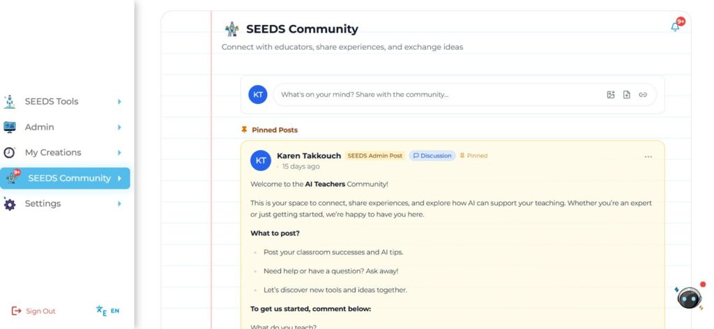 The SEEDS Teachers Community is a free dedicated space within SEEDS Hub designed for teachers who want to grow together.