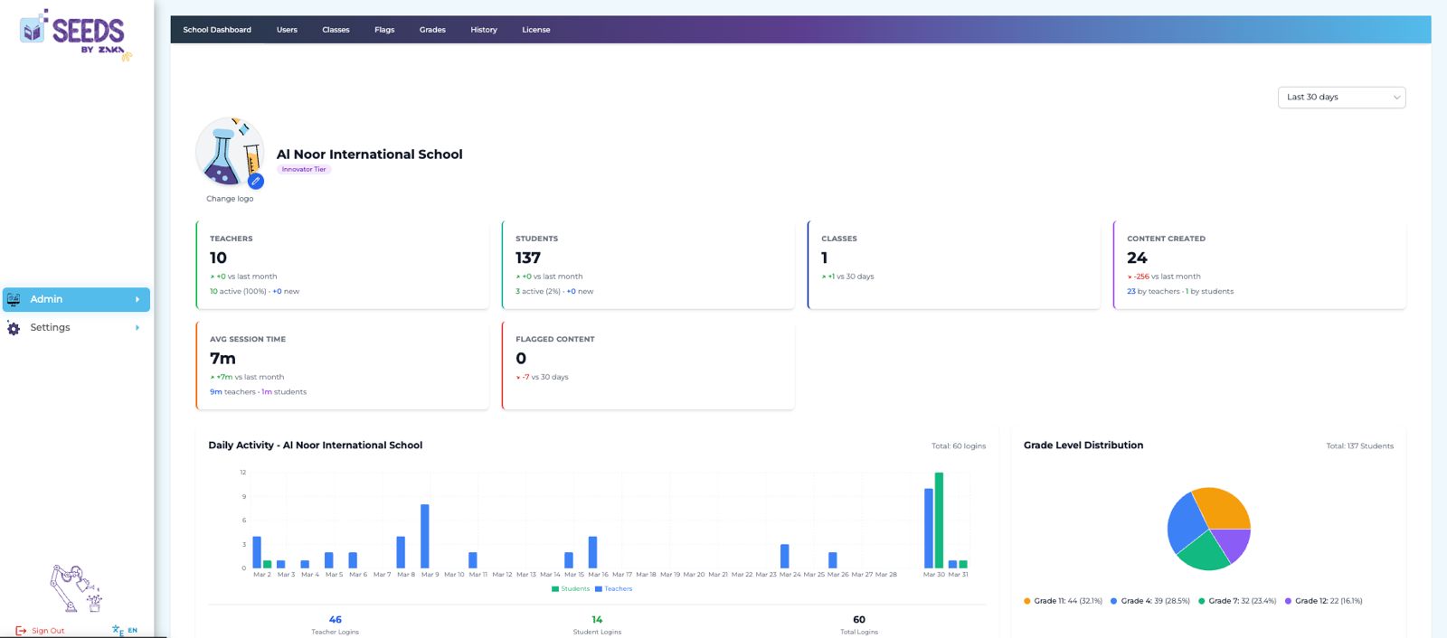 Track teacher engagement, student progress, content creation, and usage patterns all from one place.