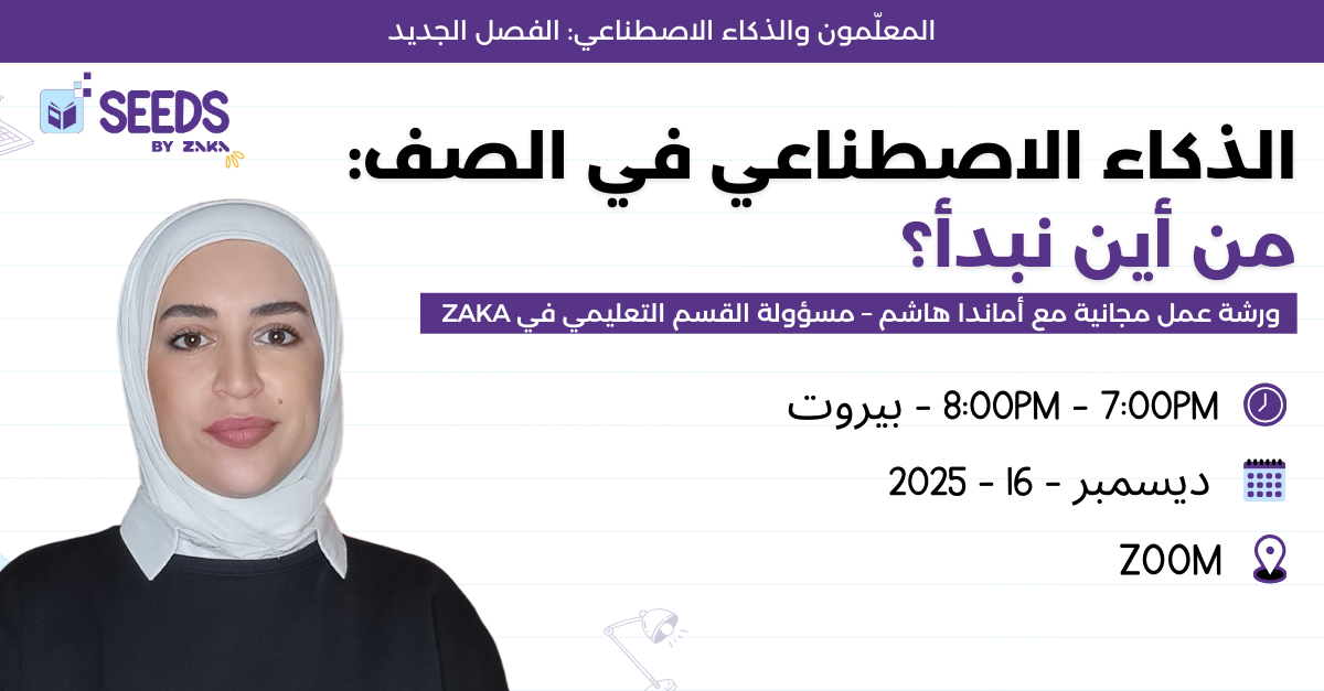 انضمّ إلى الجلسة الثانية من سلسلة "المعلّمون والذكاء الاصطناعي: الفصل الجديد"، حيث نغوص في عالم المحتوى التعليمي المصمَّم بأدوات SEEDS. في هذه الساعة التفاعلية، ستتعلّم كيف تبني دروسًا وأنشطة جذّابة باستخدام هندسة الأوامر المخصّصة للتعليم، وتكتشف طرقًا عملية لتوظيف الذكاء الاصطناعي في تصميم محتوى يلهم طلابك ويُسهّل عملك